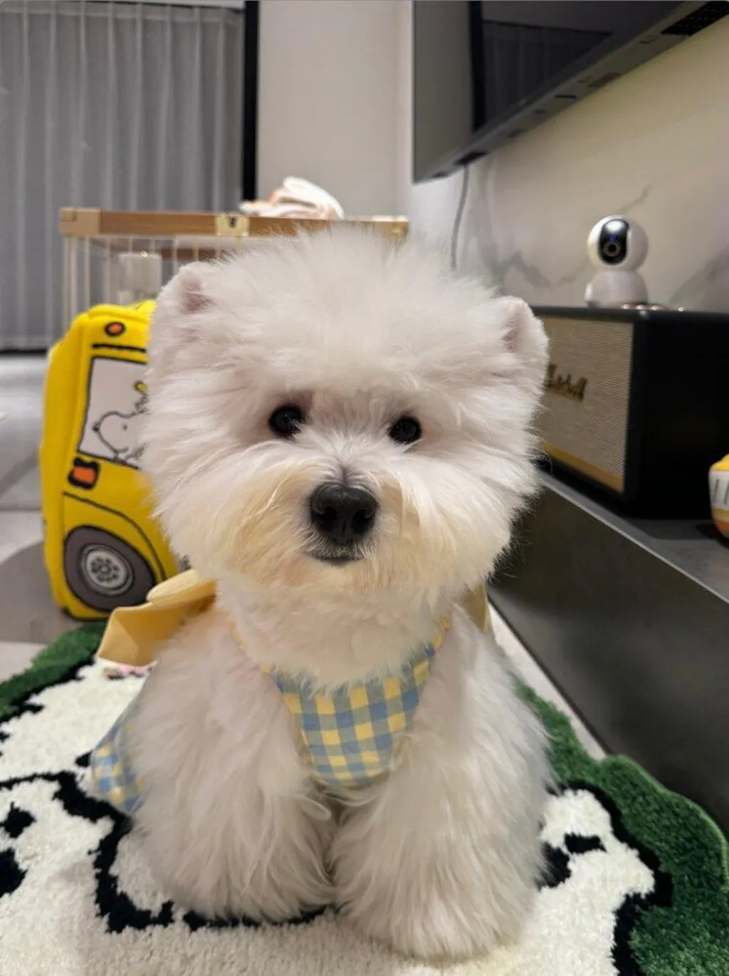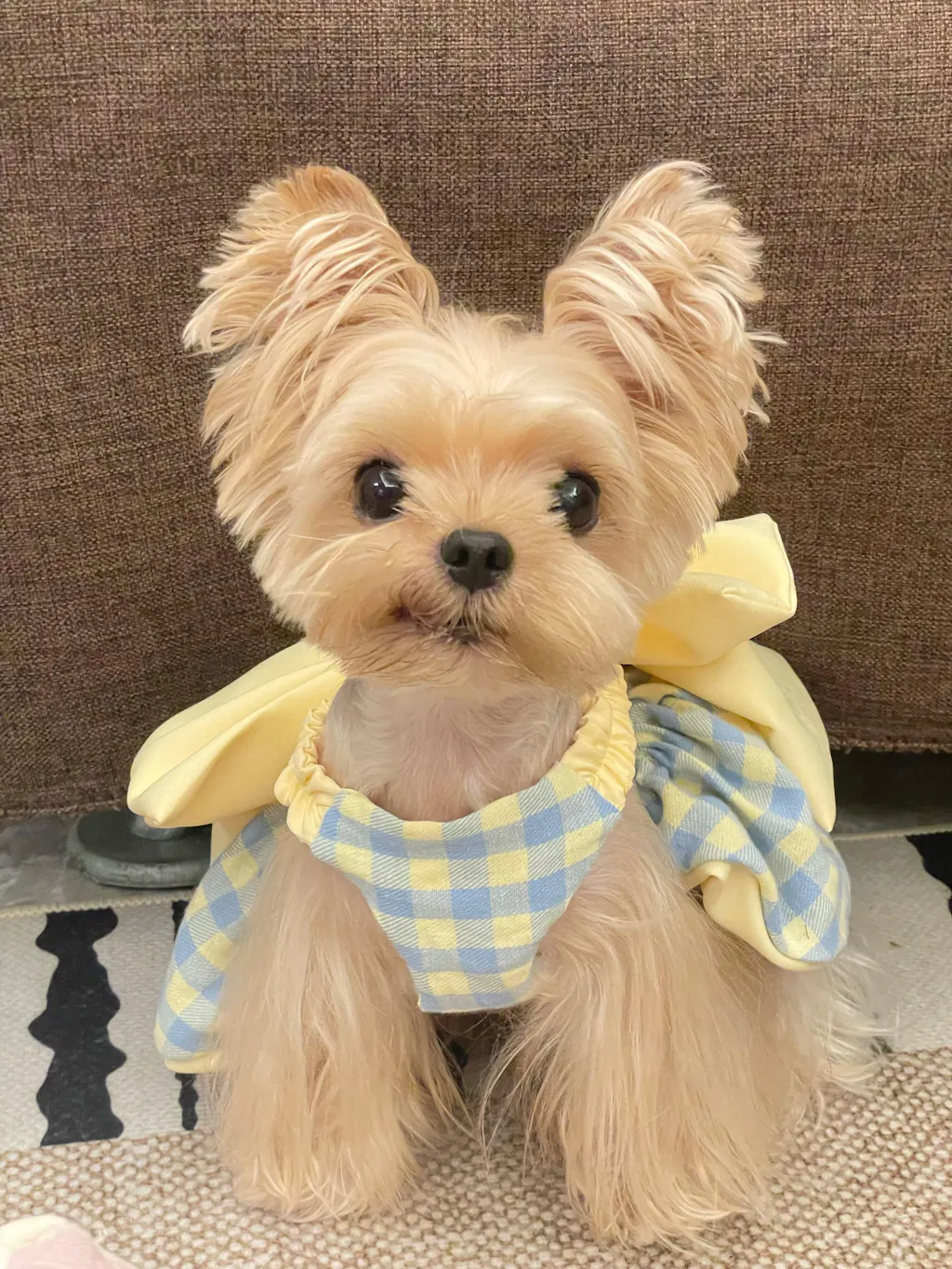 フレッシュレモンギンガム柄 – 陽気な柑橘系トーンのクラシックなチェック柄で、夏のペットファッションに明るさをもたらします