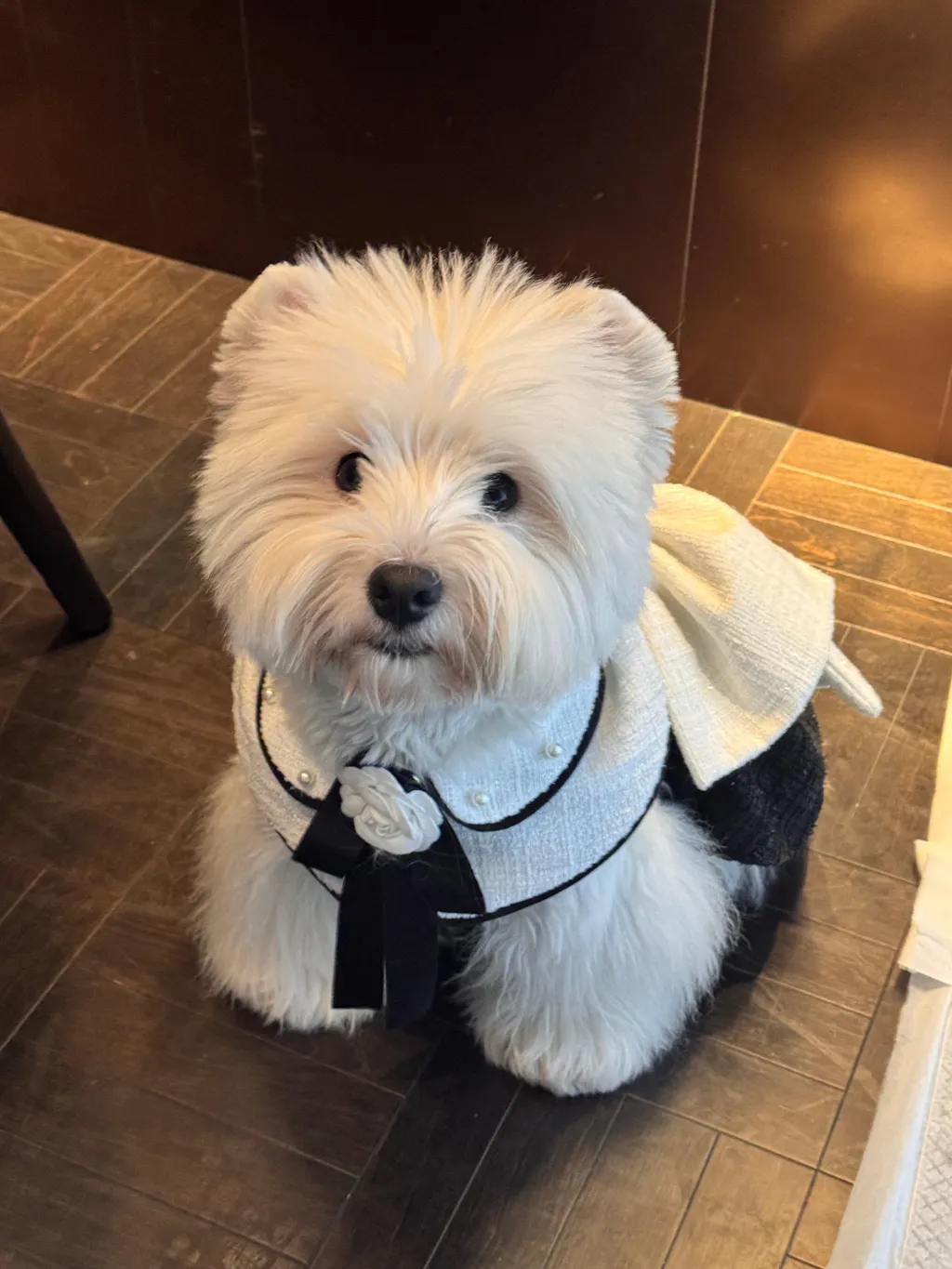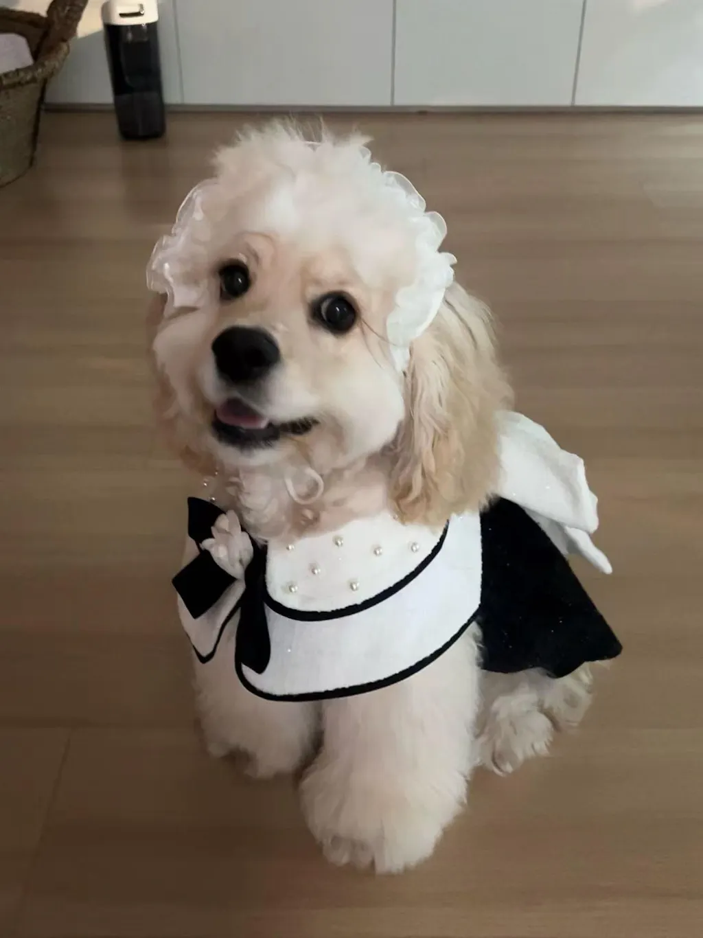 小さなお姫様のための、時代を超えたエレガンス。シャネルの象徴的なスタイルにインスパイアされたオートクチュールペットファッションの傑作、ミス・ココ黒と白のラグジュアリーリトルプリンセスドレスをご紹介します。この優美なドレスは、クラシックな黒と白のシックさと、妥協のない快適さと洗練さを兼ね備えた、究極の高級ペット服です。