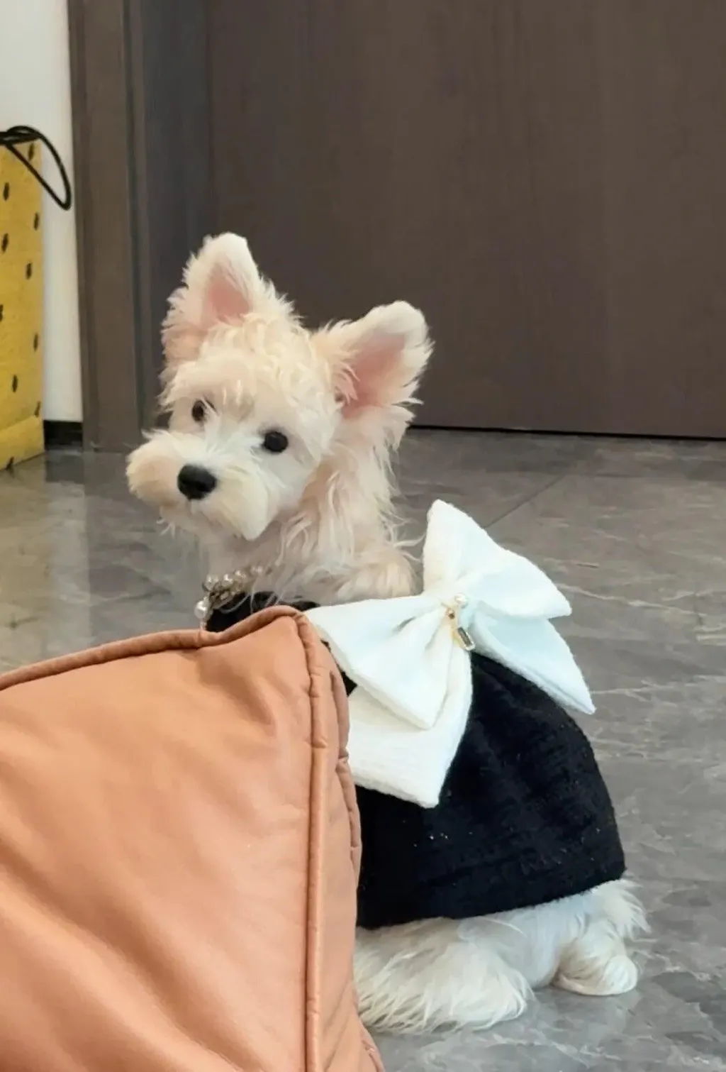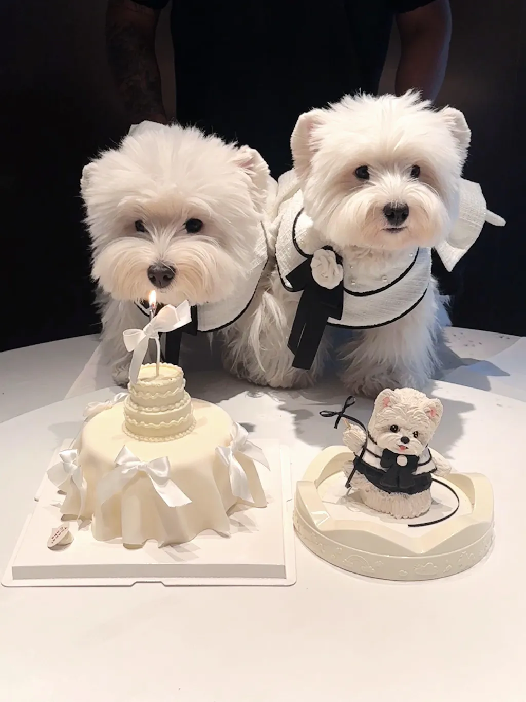 象徴的な白黒デザイン – 時代を超越したペットファッションのエレガンスを体現する、クラシックなシャネル風の美学