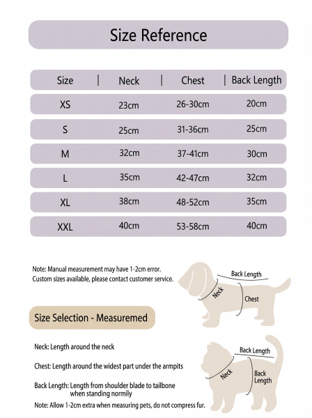 Pet clothing sizes vary by brand, so do not choose size based on breed alone.